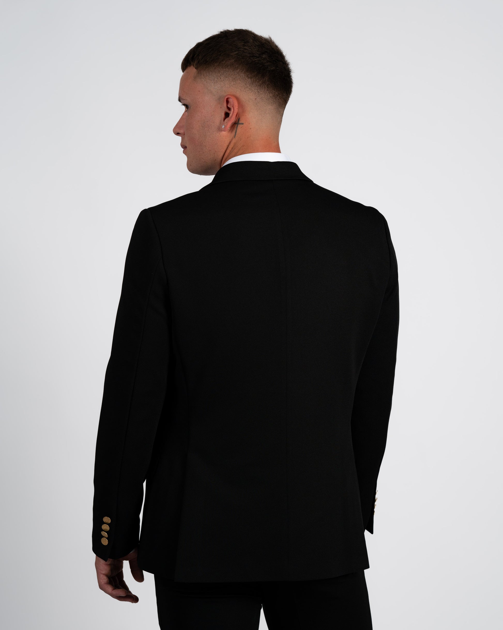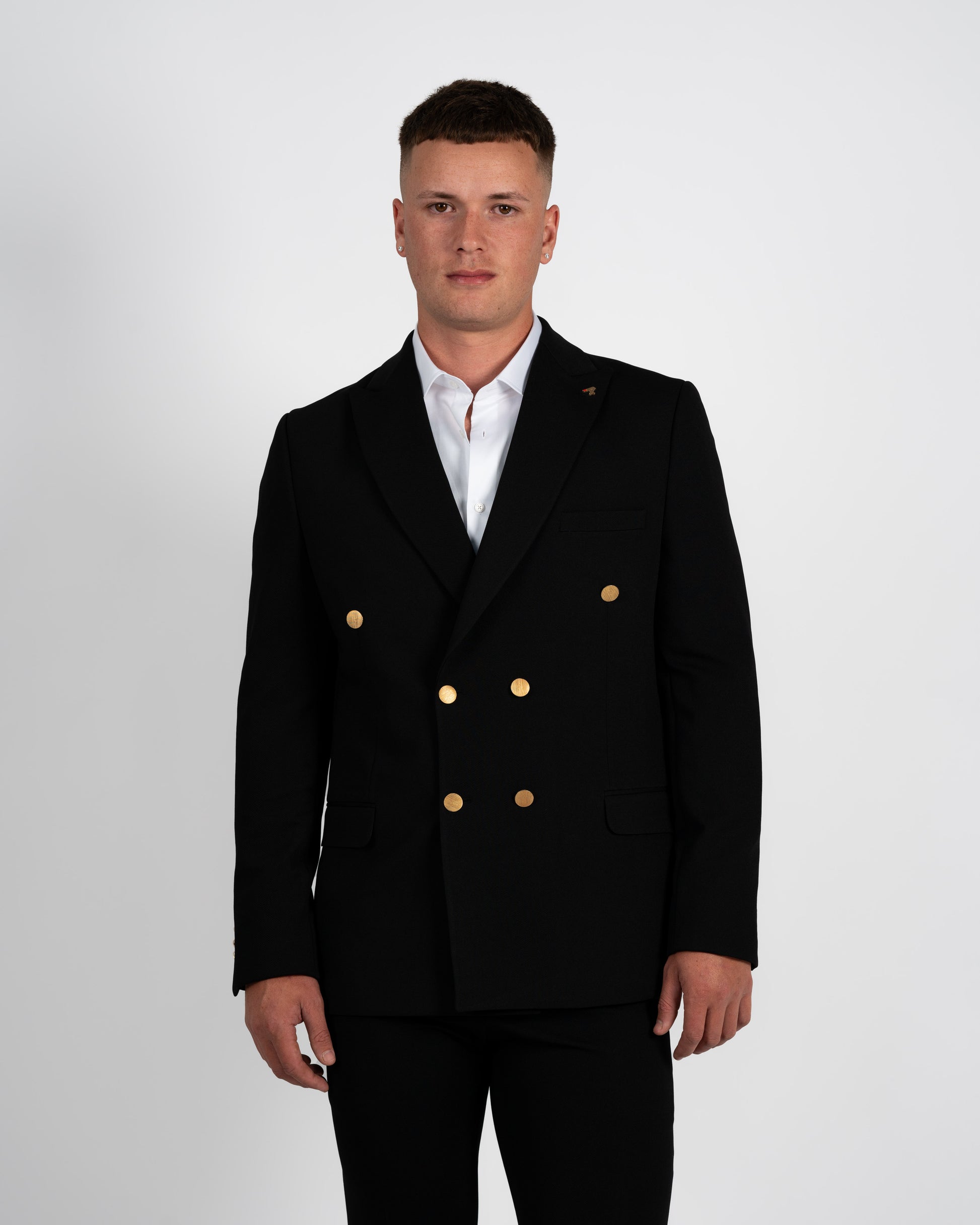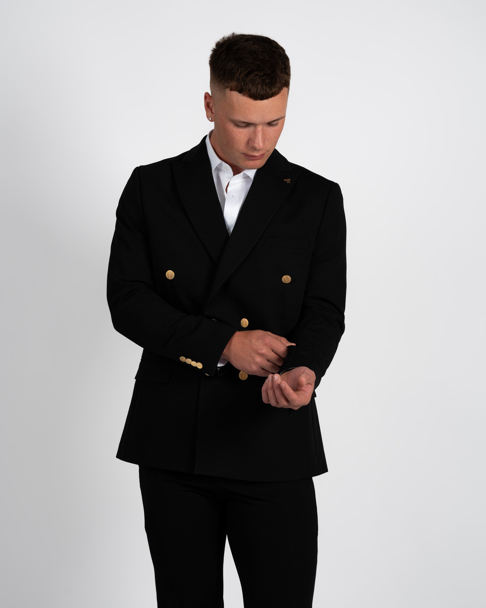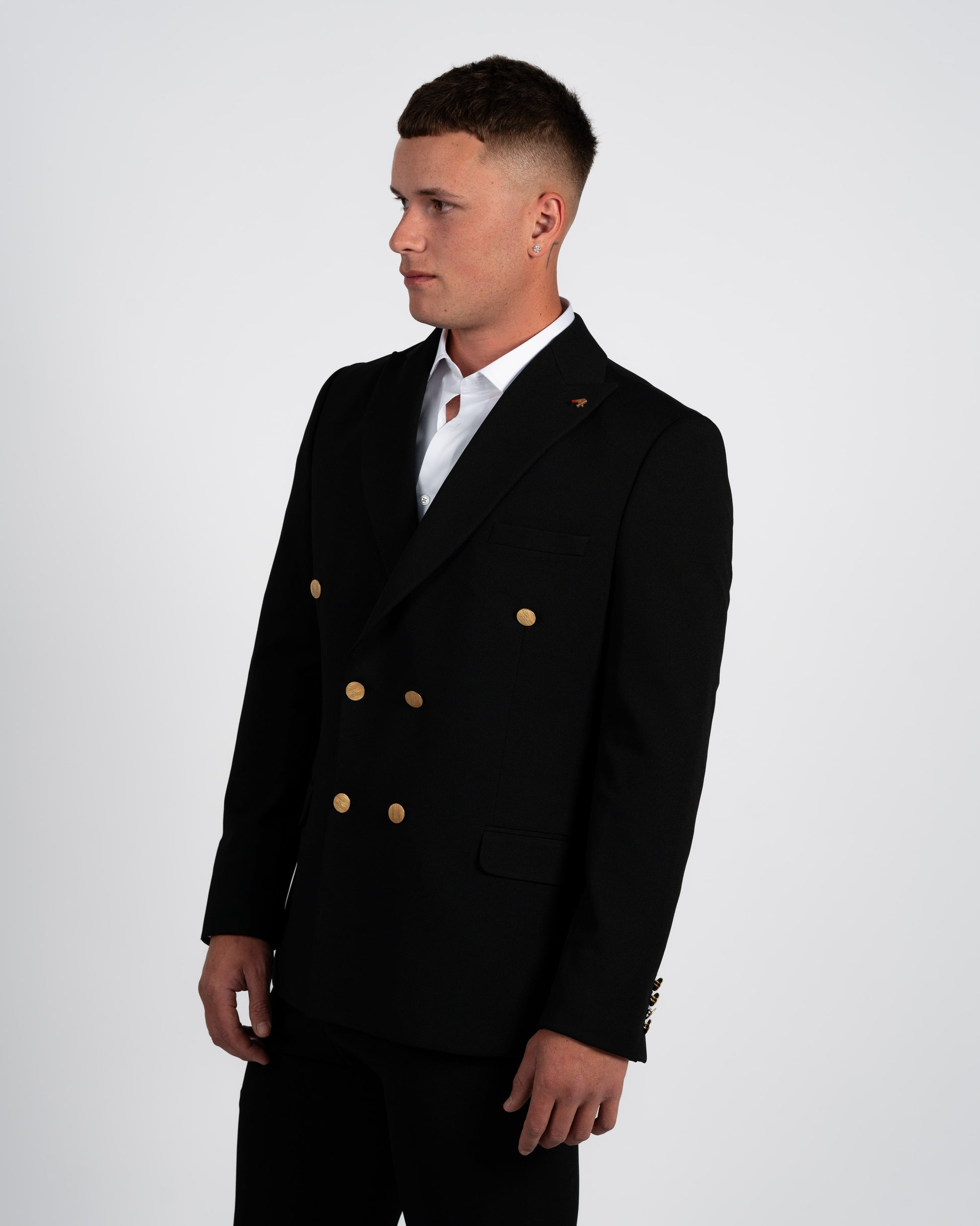 Embrace timeless elegance with this black double-breasted suit jacket, meticulously designed in Italy to embody sophistication and precision. Crafted from premium materials sourced from both Turkey and Italy, this jacket delivers an impeccable fit and luxurious feel.