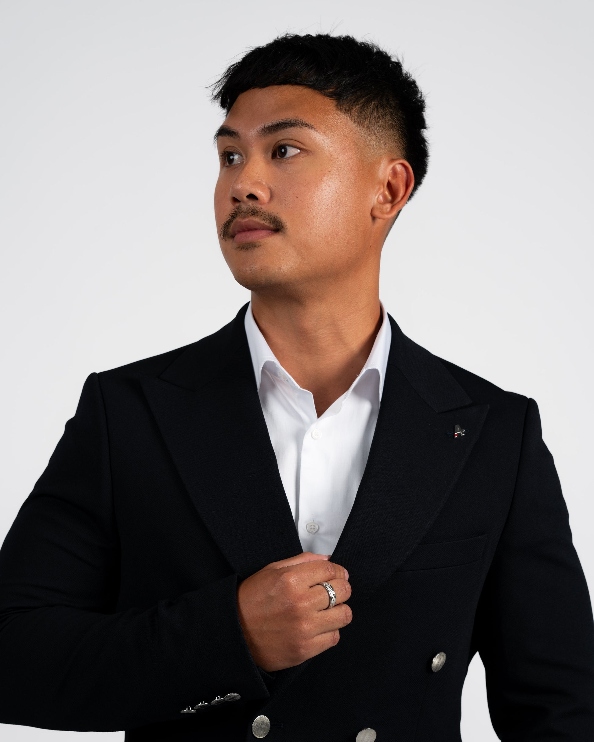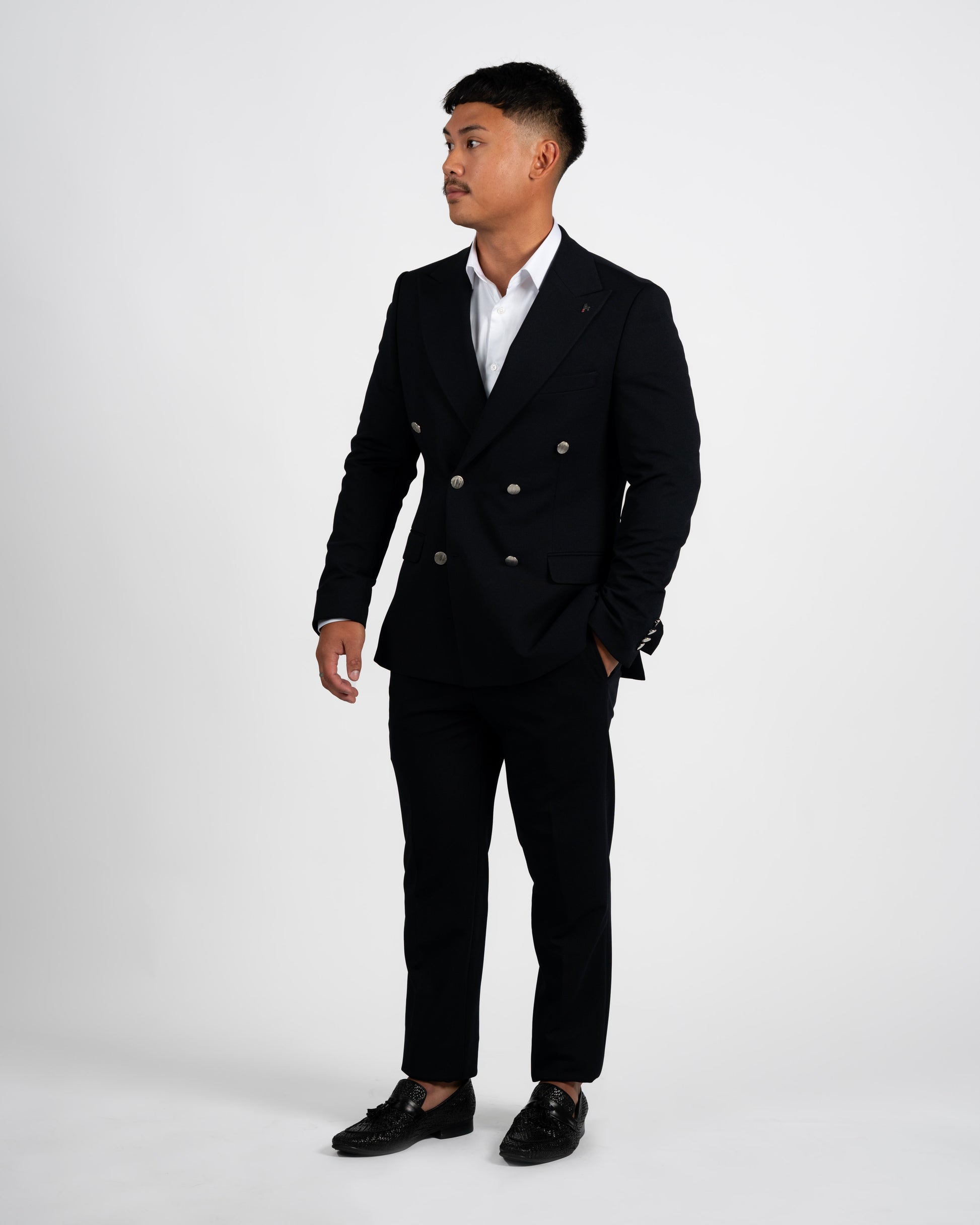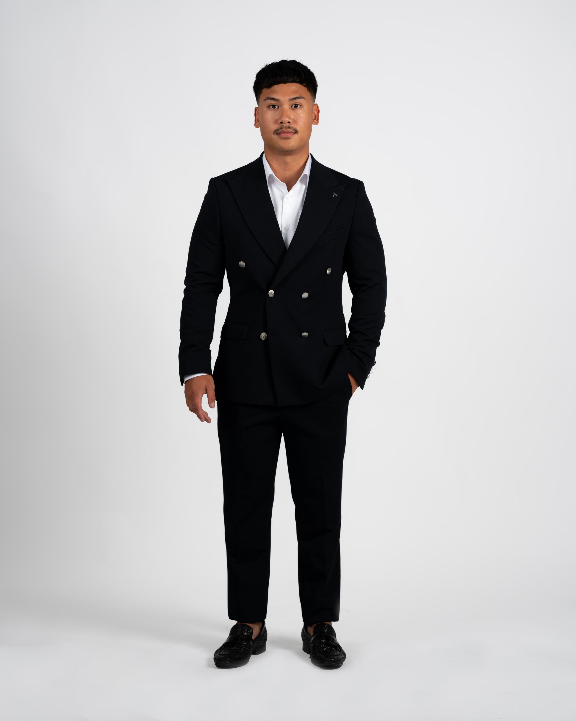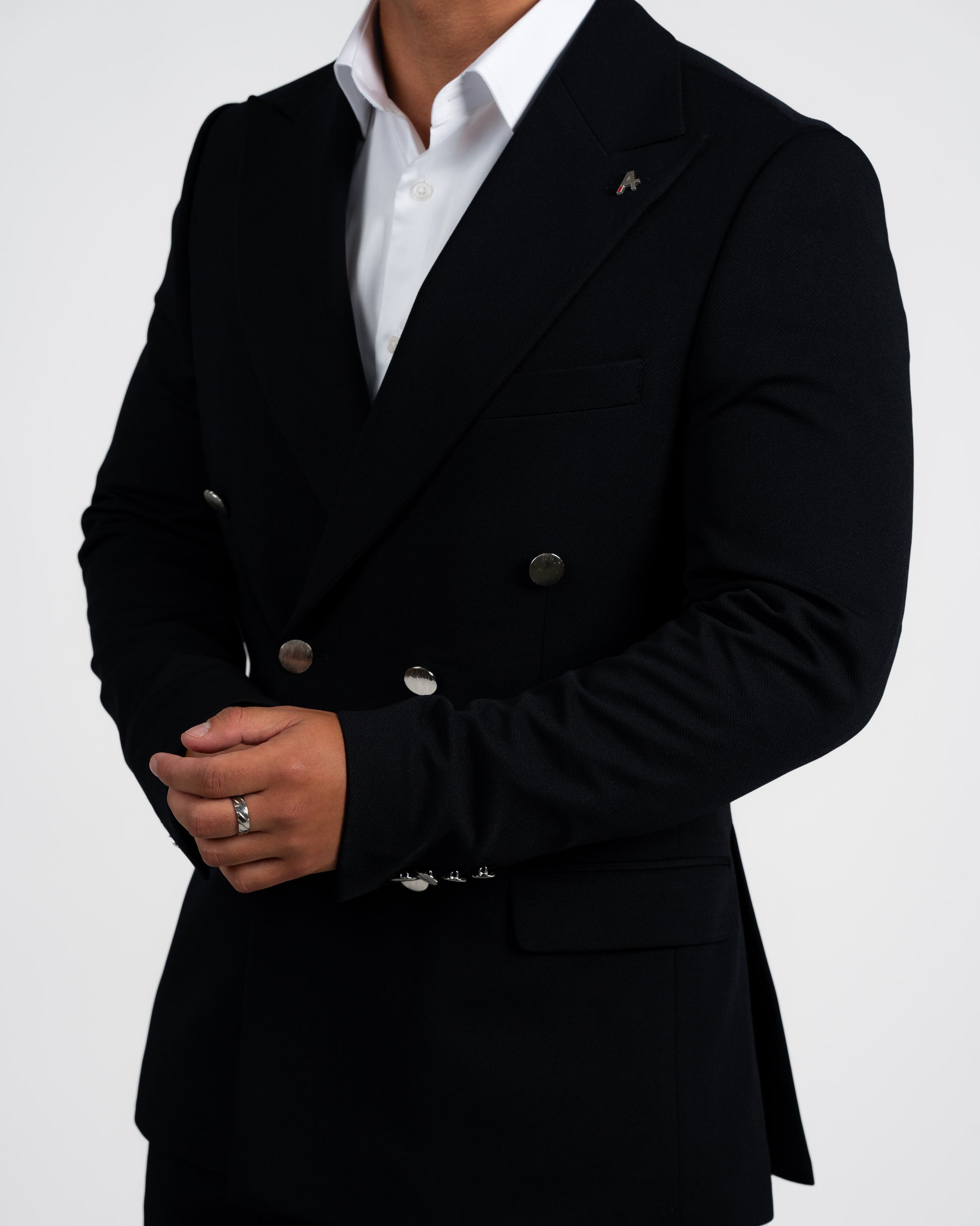 Refined and timeless, this navy double-breasted 2-piece suit is designed for the modern gentleman who values sophistication and style. The jacket features a double-breasted front with six buttons, broad peak lapels, and a tailored fit that creates a commanding silhouette. Paired with slim-fit trousers, this suit offers a perfect balance of contemporary elegance and traditional charm. Made from premium, durable fabric, it provides comfort and a polished look, making it ideal for both formal occasions and business settings.
