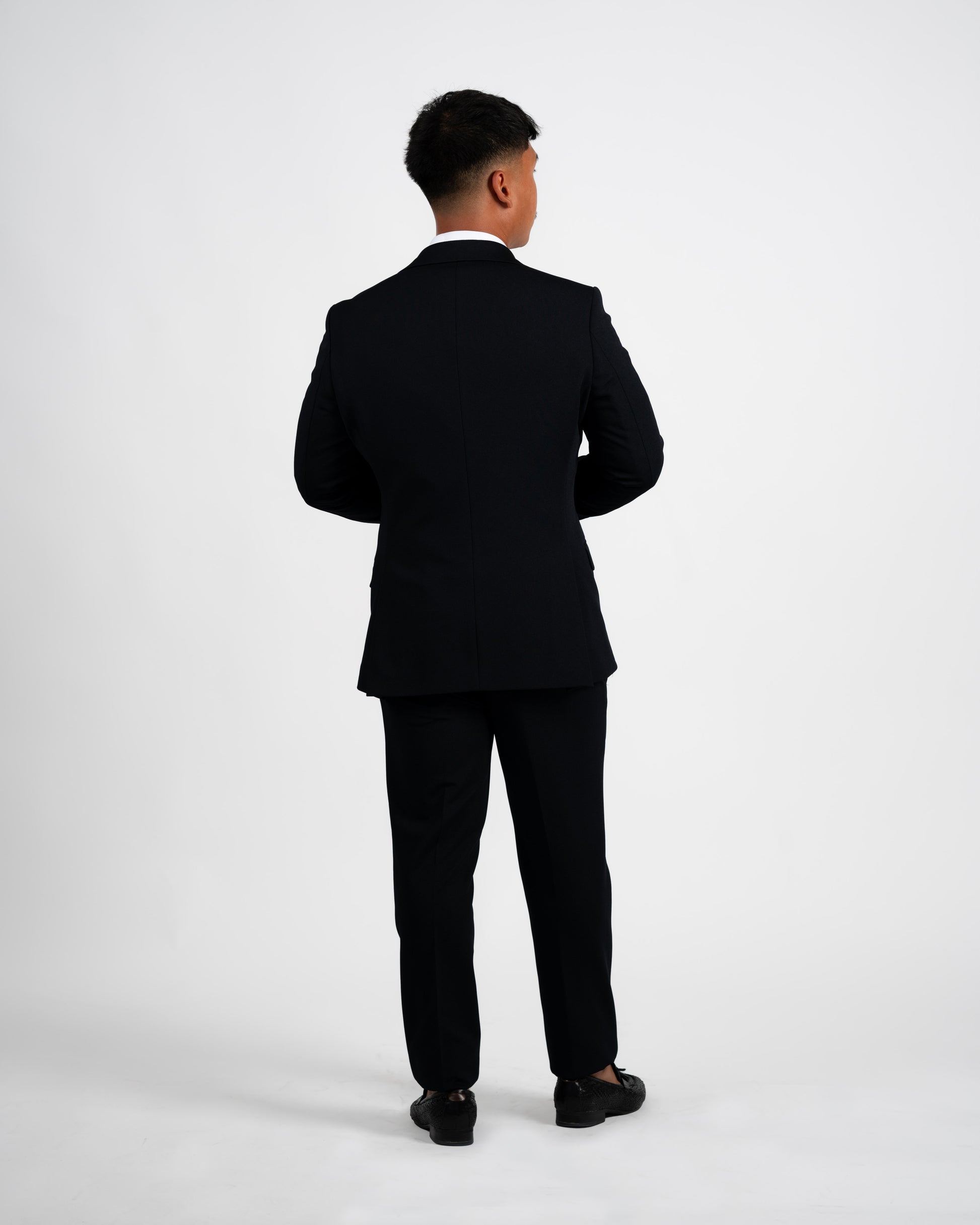 Step up your wardrobe with this classic navy suit, the epitome of understated elegance and confidence.