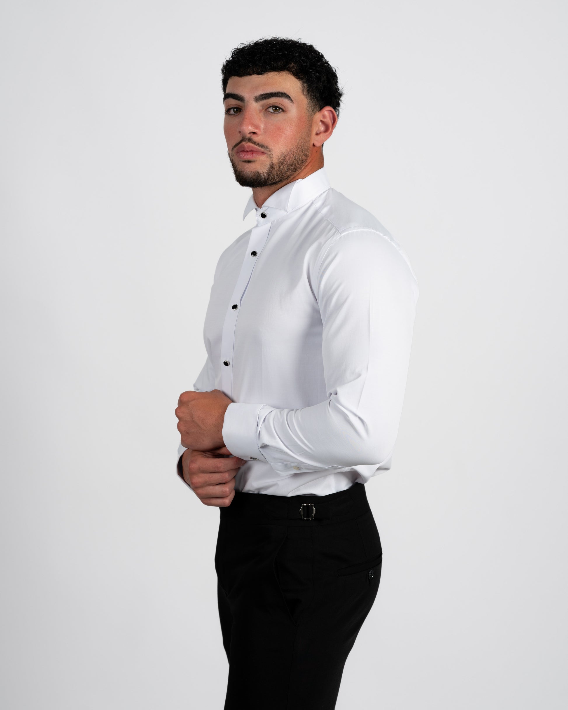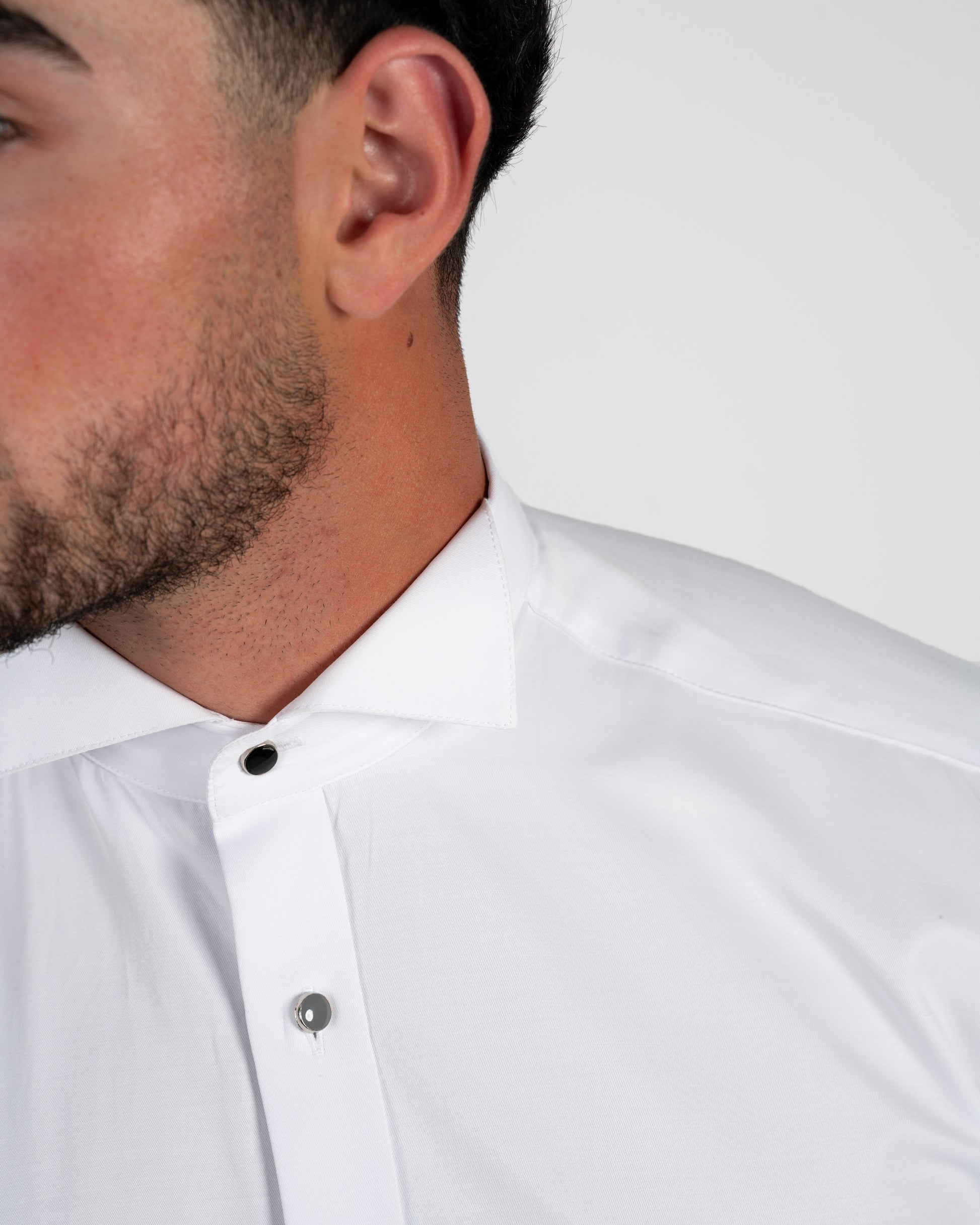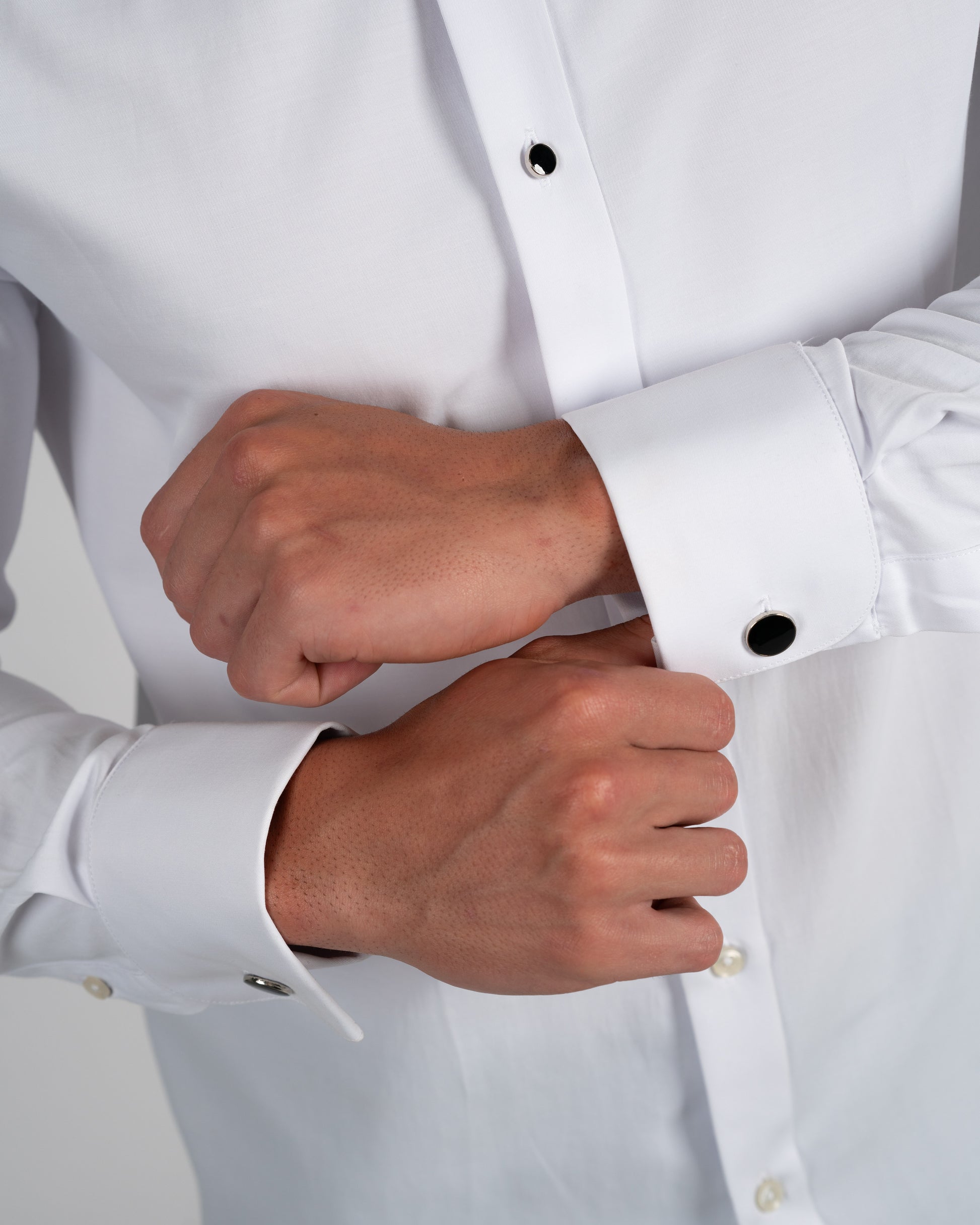Elevate your formalwear with this impeccably crafted tuxedo shirt, a perfect blend of luxury and practicality. Made from a premium cotton and polyester blend, it offers the ideal balance of comfort, durability, and a polished appearance. Designed in Italy and expertly crafted in Turkey, this shirt embodies European elegance and attention to detail.