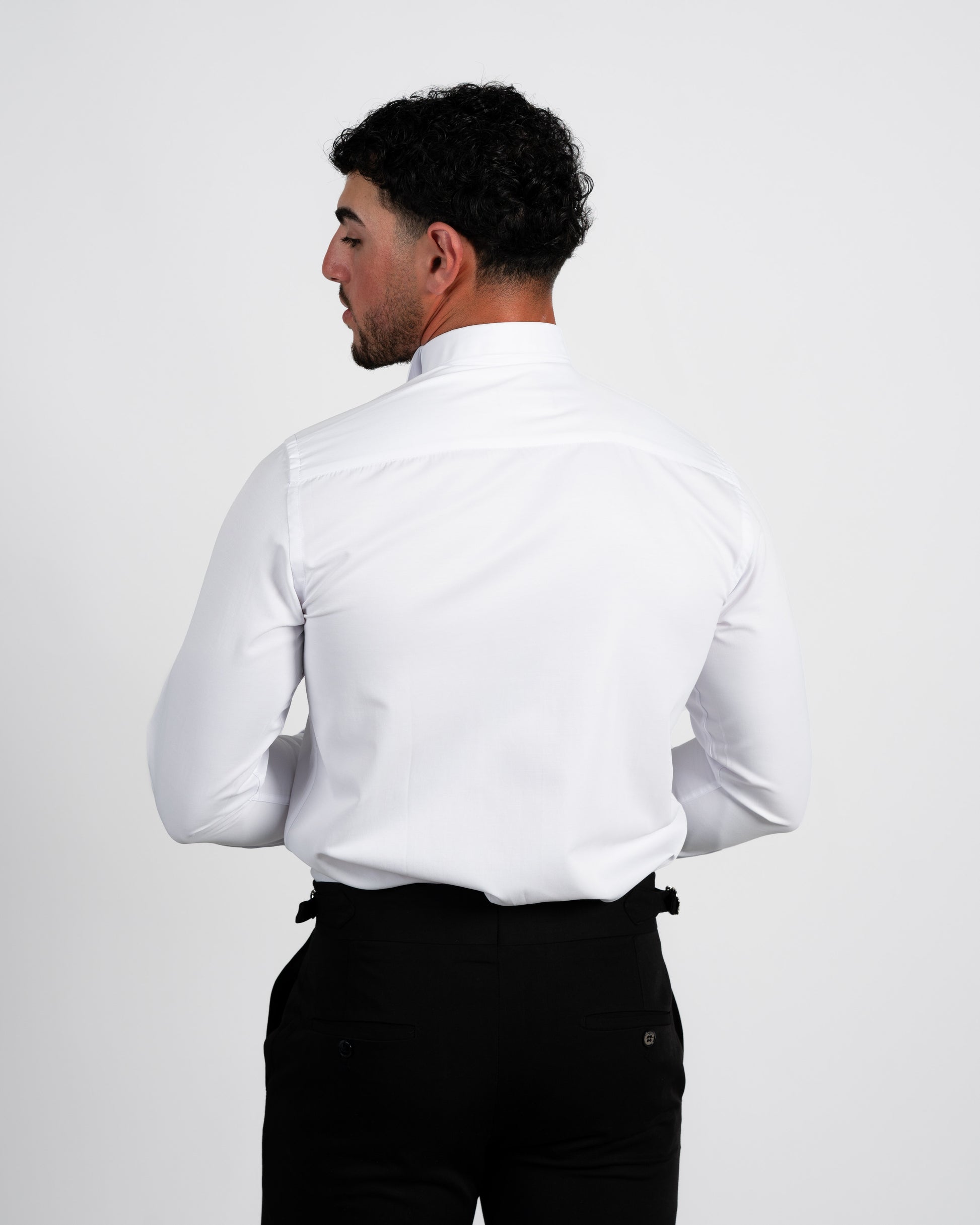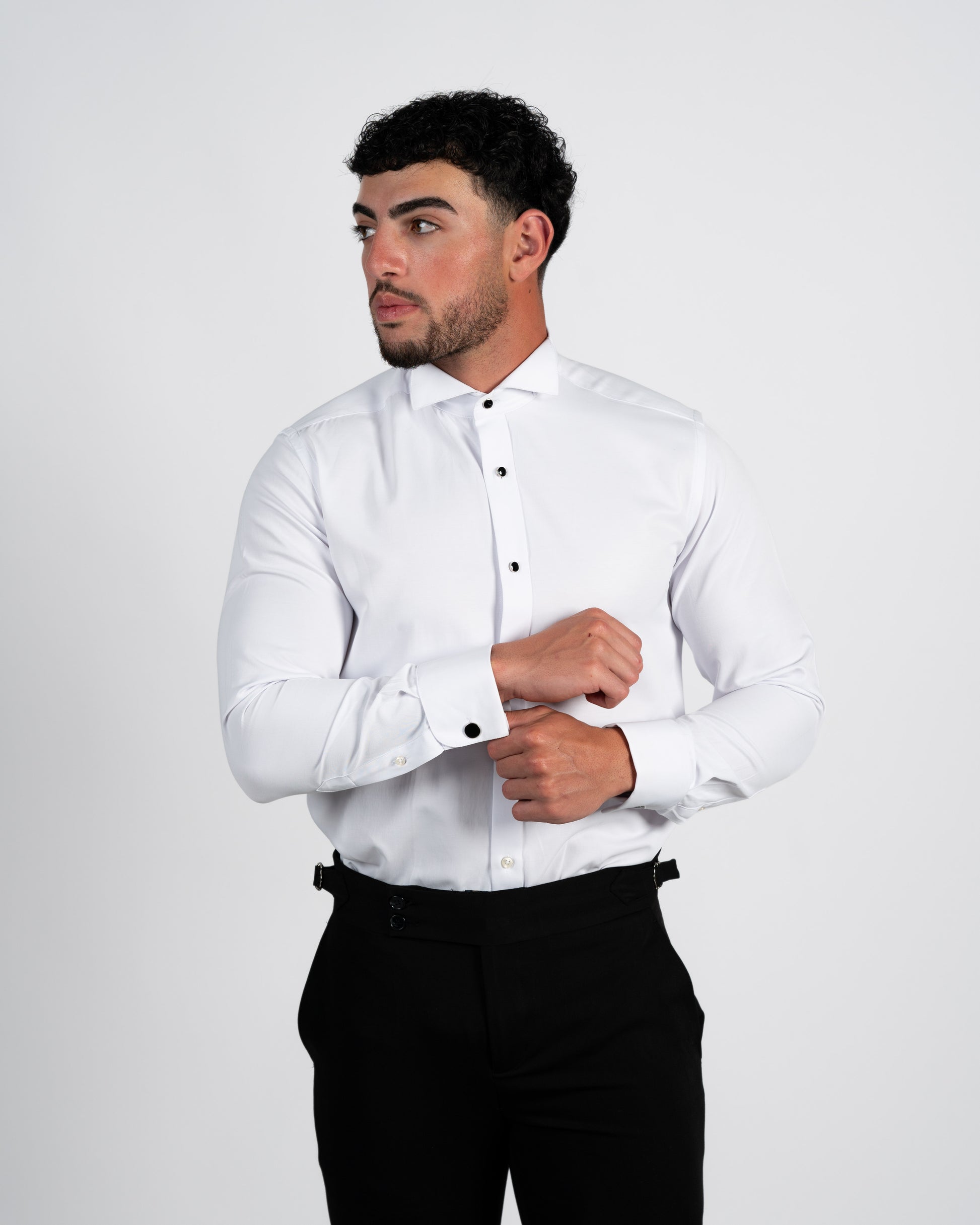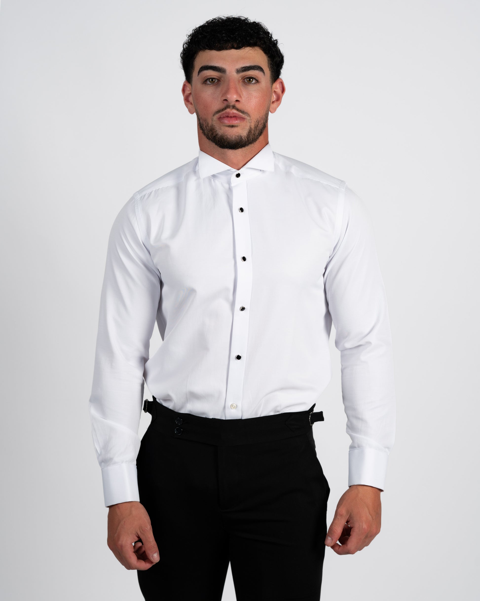 Elevate your formalwear with this impeccably crafted tuxedo shirt, a perfect blend of luxury and practicality. Made from a premium cotton and polyester blend, it offers the ideal balance of comfort, durability, and a polished appearance. Designed in Italy and expertly crafted in Turkey, this shirt embodies European elegance and attention to detail.