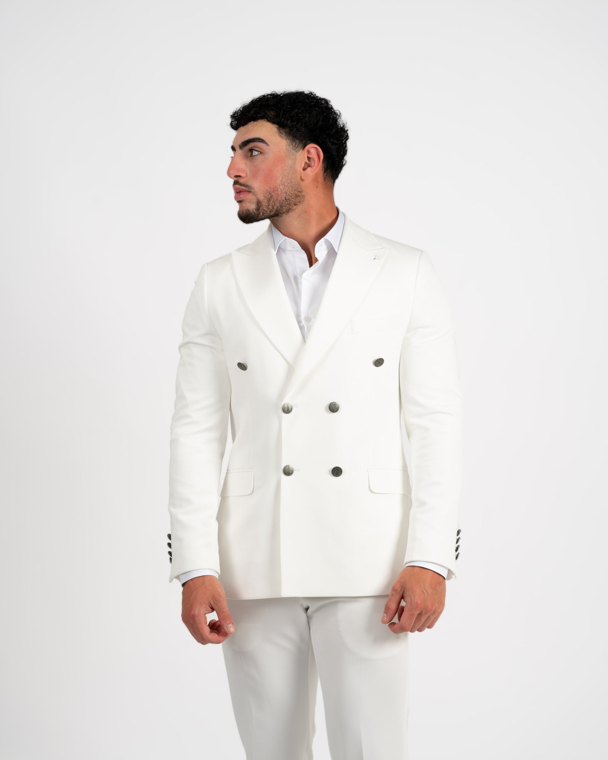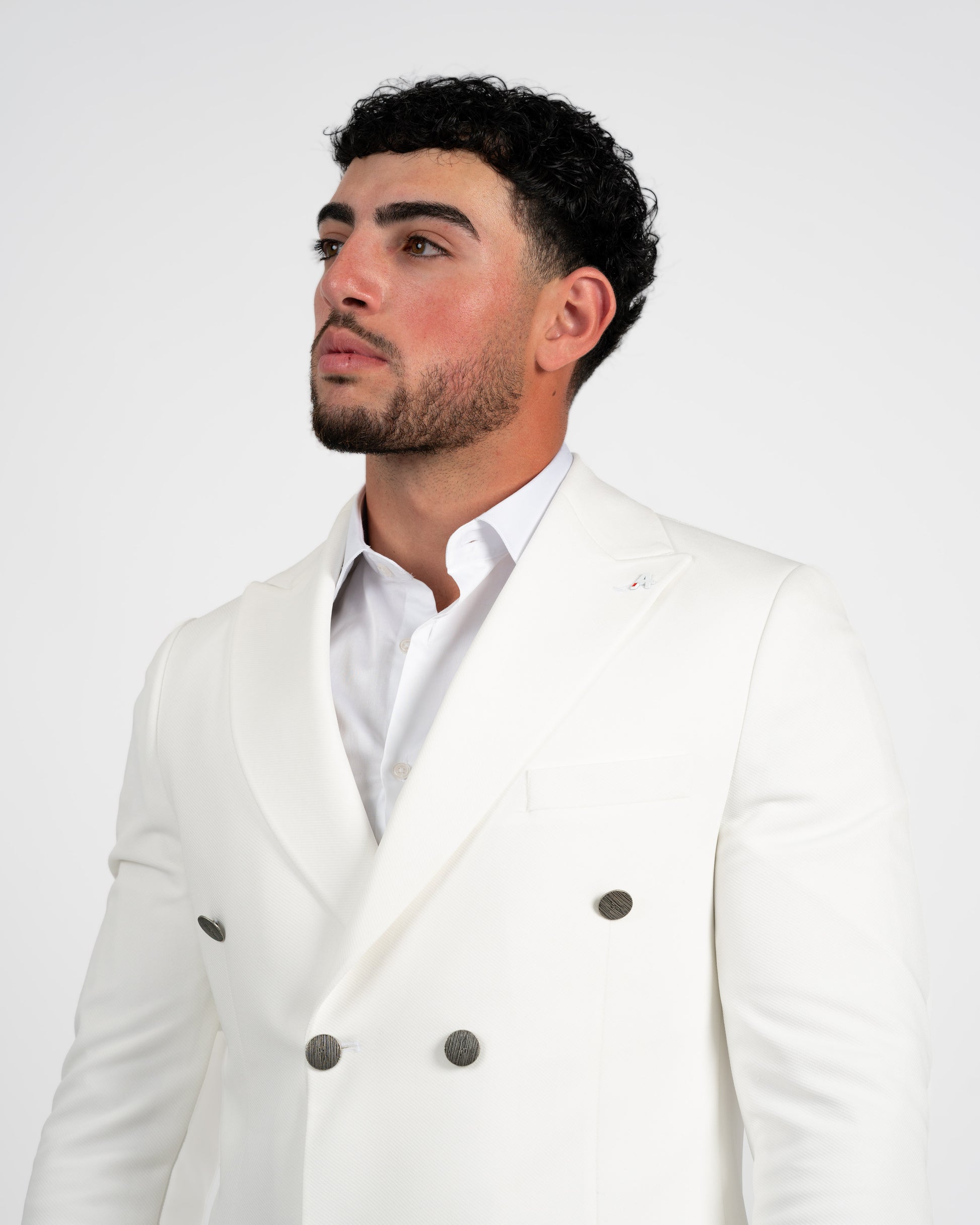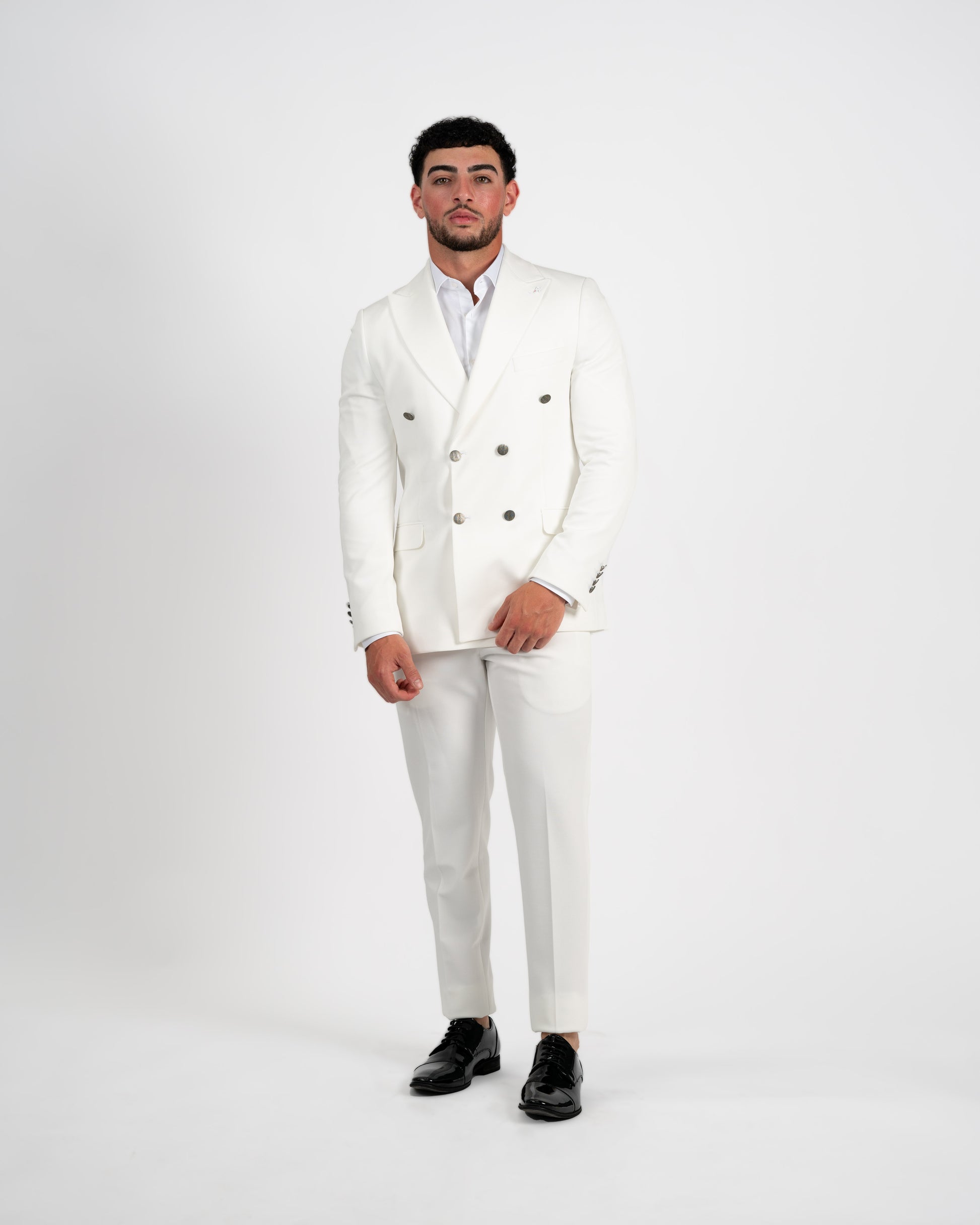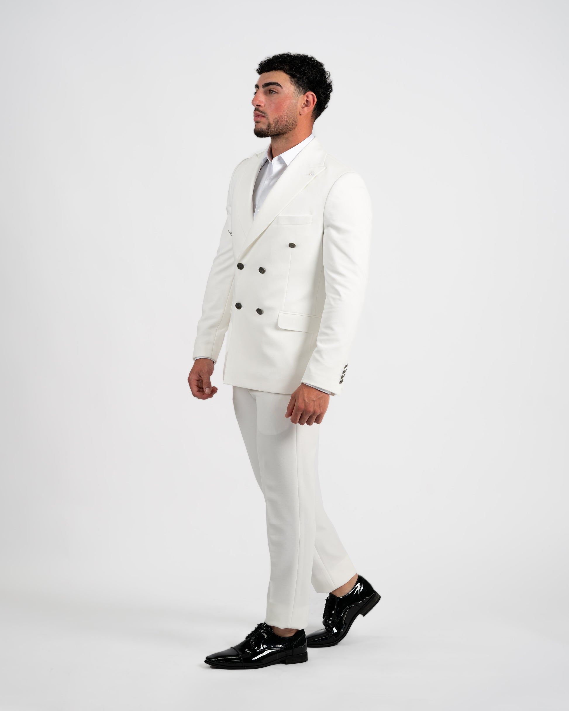 Step into any event with undeniable style and confidence in this white double-breasted suit.